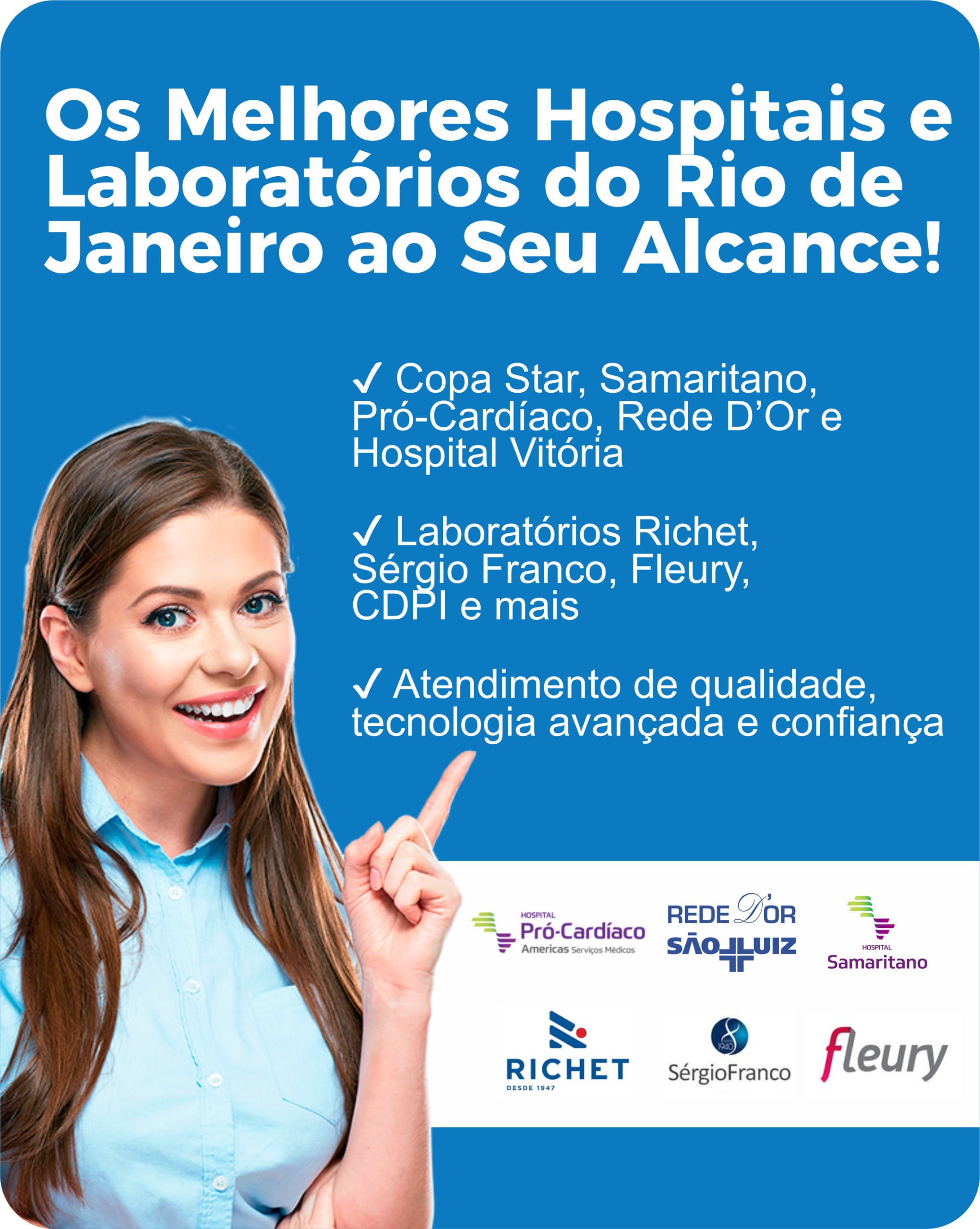Além disso, você tem à disposição os principais laboratórios e centros de diagnóstico do RJ, como Richet, Sérgio Franco, Bronstein, Labs a+ (Grupo Fleury), Lâmina, CDPI, Alta Diagnósticos e Sabin, garantindo exames rápidos, precisos e com total confiabilidade.
